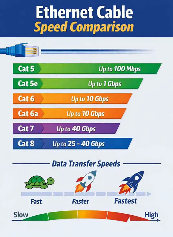 Kotikäyttöön riittävät yleensä Cat 5e- tai Cat 6 -kaapelit. Cat 5e tukee jopa 1 Gbps:n nopeuksia, kun taas Cat 6 pystyy käsittelemään jopa 10 Gbps:n nopeuksia lyhyillä etäisyyksillä. Korkeammat standardit, kuten Cat 6a, Cat 7, Cat 7a ja Cat 8, on tarkoitettu ammattikäyttöön – palvelimille, toimistoille ja yrityksille, jotka tarvitsevat suurta kaistanleveyttä ja mahdollisimman vähän häiriöitä.
