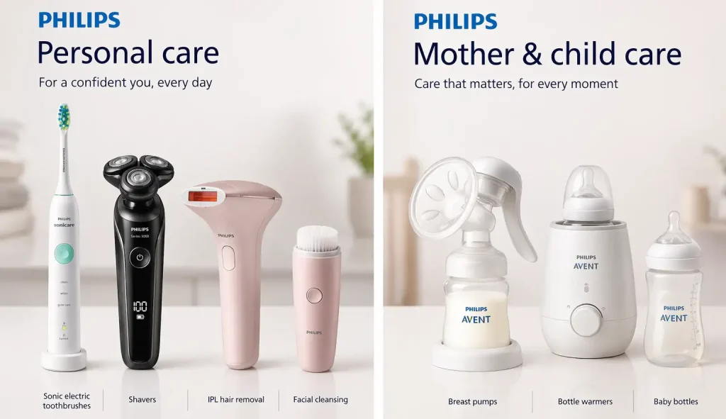 Nykyään Royal Philips säilyttää edelleen kontrollin henkilökohtaiseen hygieniaan liittyvien tuotteiden sekä äitiys- ja vauvanhoitotuotteiden kehityksestä. Näitäkään tuotteita Philips ei kuitenkaan itse valmista, vaan ne suunnitellaan yrityksessä ja valmistetaan OEM-kumppaneiden toimesta.